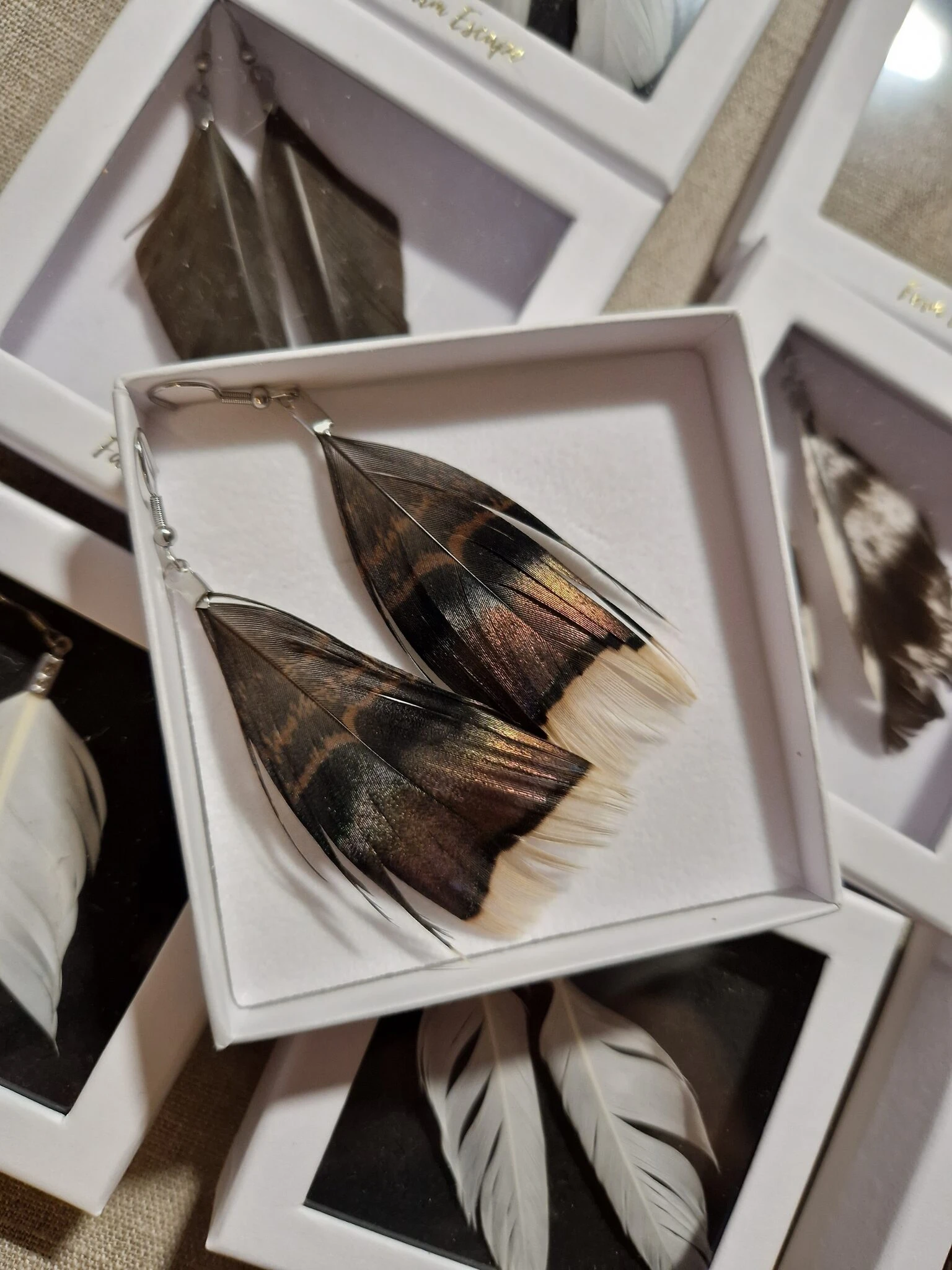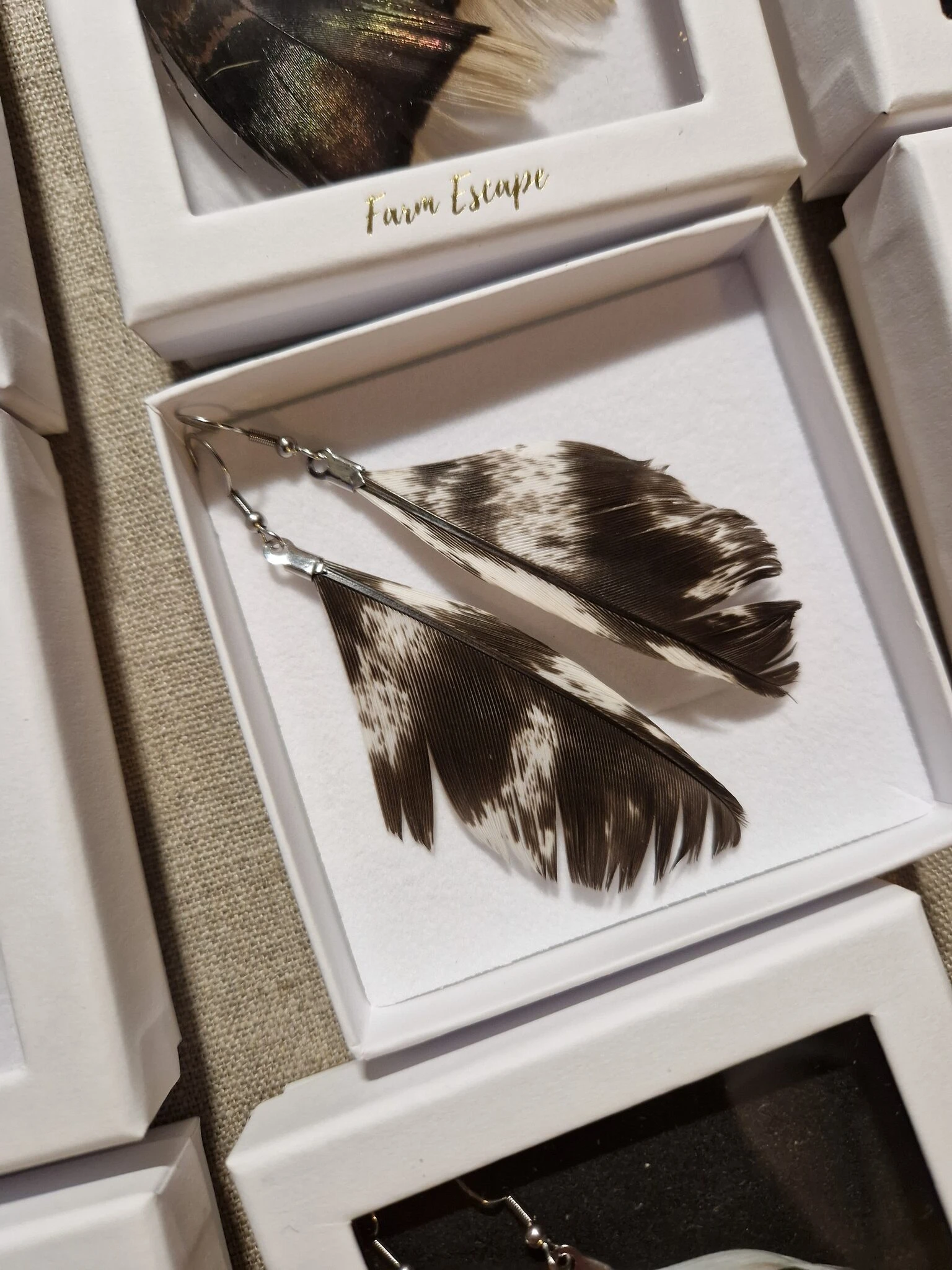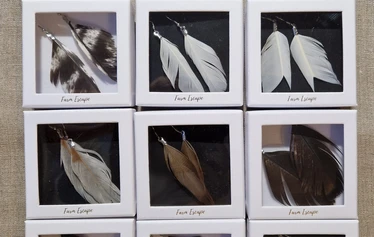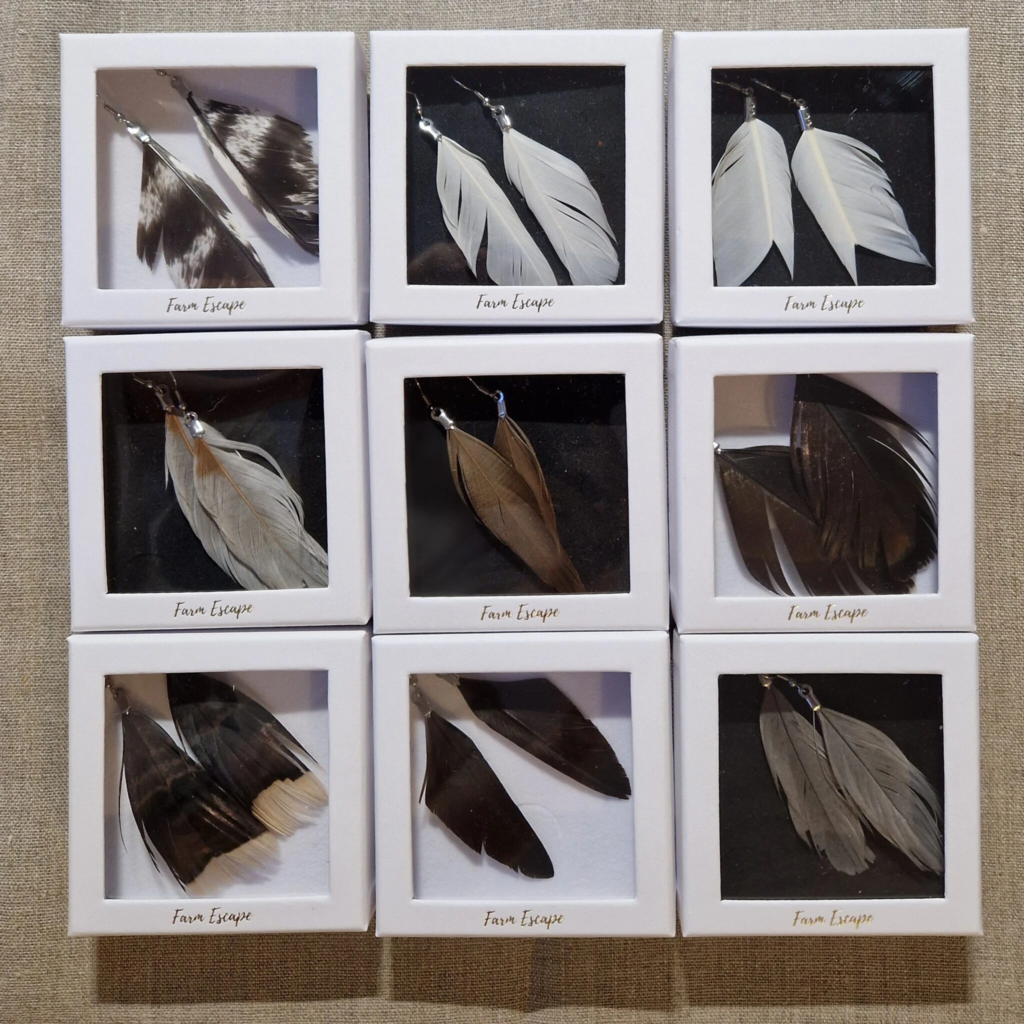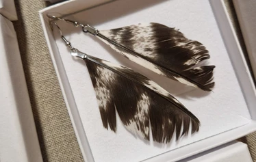 Farm Escapen sulkakorvakorut ja -riipukset on valmistettu rakkaudella Torniossa omien lintujemme pestyistä ja lämpödesinfioiduista sulista.
